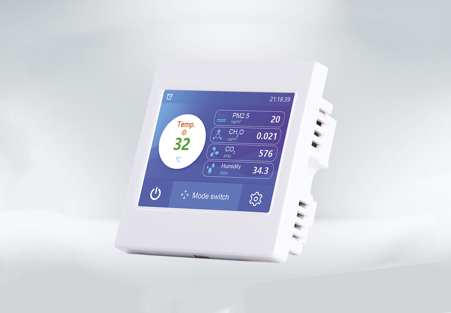 Things you can monitor via the touch screen controller are; Indoor Temperature, Humidity Percentage, CO₂ (Oxygen) PPM, CH₂O (Atmospheric Toxicity levels) ug/m3, and PM2.5 (Atmospheric Particulate Matter or Air Pollution) ug/m3.